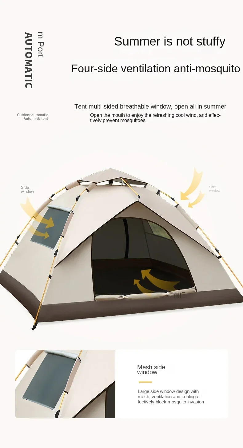 The tent is ventilated on all sides to prevent mosquitoes and insects in summer.
